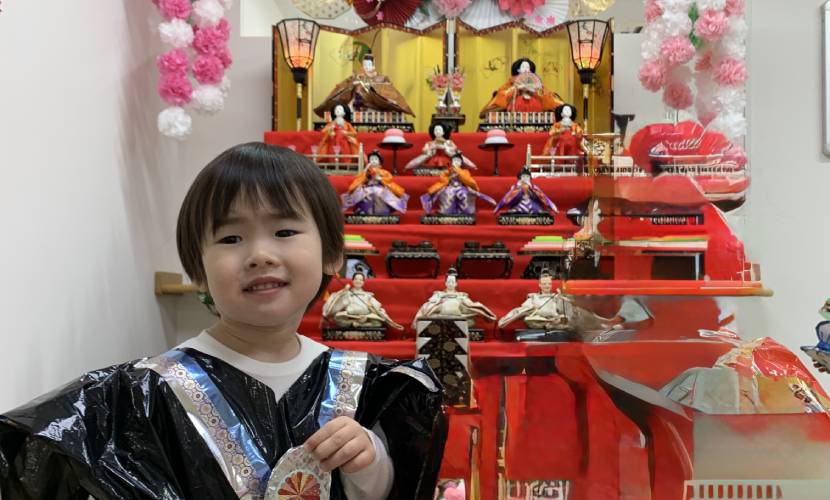 保育室いっぱいに飾られたお花やひな飾りが春の訪れを感じさせ、にぎやかで温かい雰囲気に包まれました。
